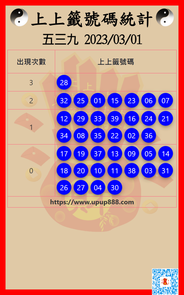 五三九上上籤號碼統計 3/1