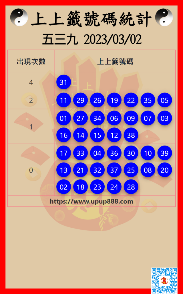 五三九上上籤號碼統計 3/2