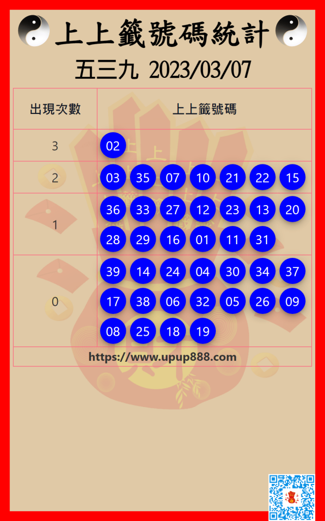 五三九上上籤號碼統計 3/7