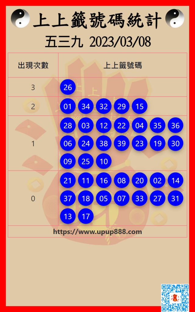 五三九上上籤號碼統計 3/8