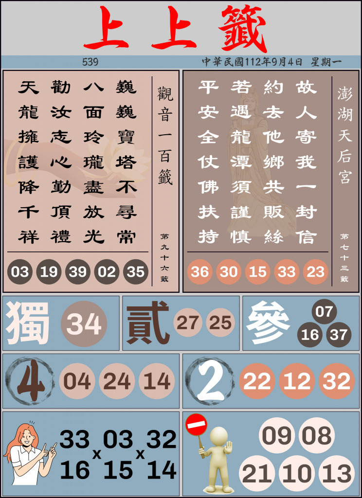 五三九 上上籤 9/4