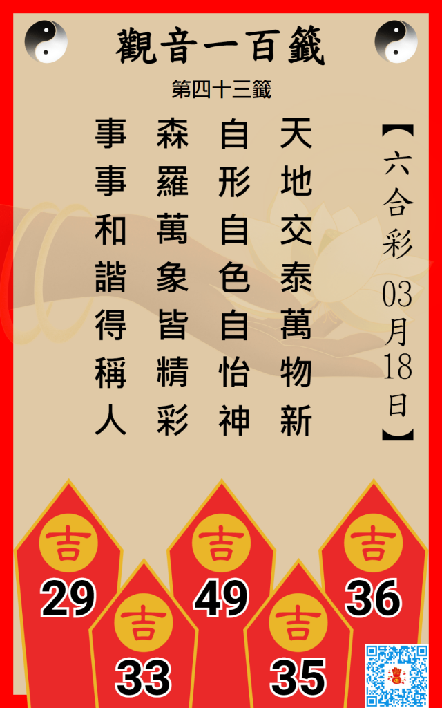 六合彩觀音一百籤 3/18