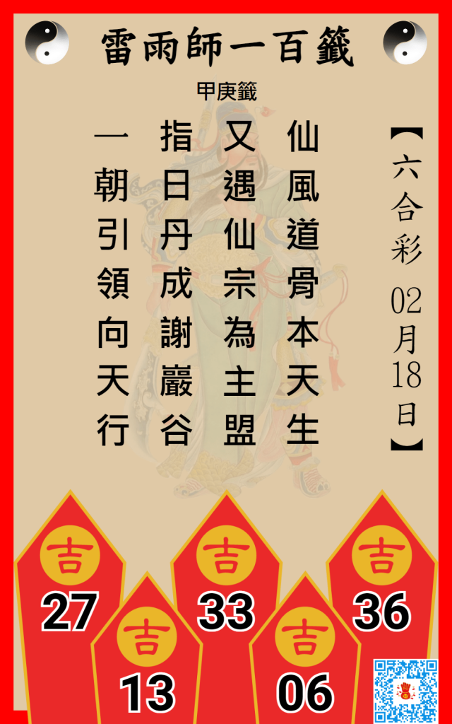 六合彩雷雨師一百籤 2/18