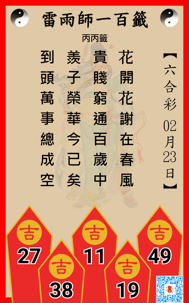 六合彩雷雨師一百籤 2/23