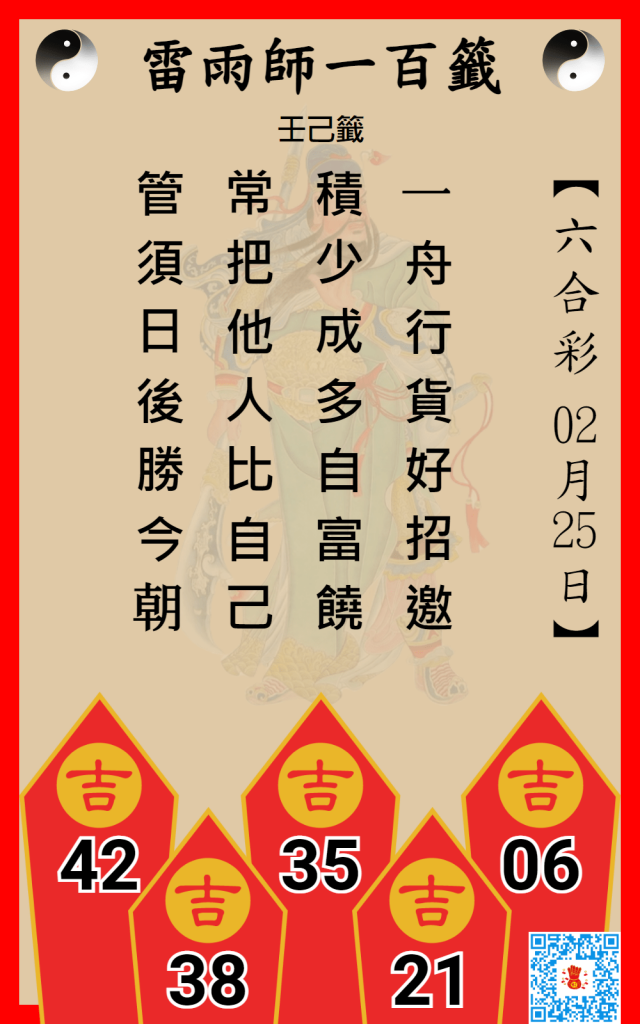 六合彩雷雨師一百籤 2/25
