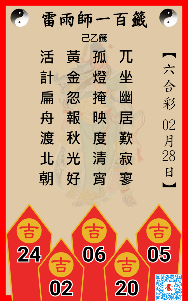 六合彩雷雨師一百籤 2/28
