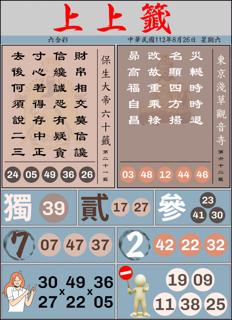 六合彩 上上籤 8/26