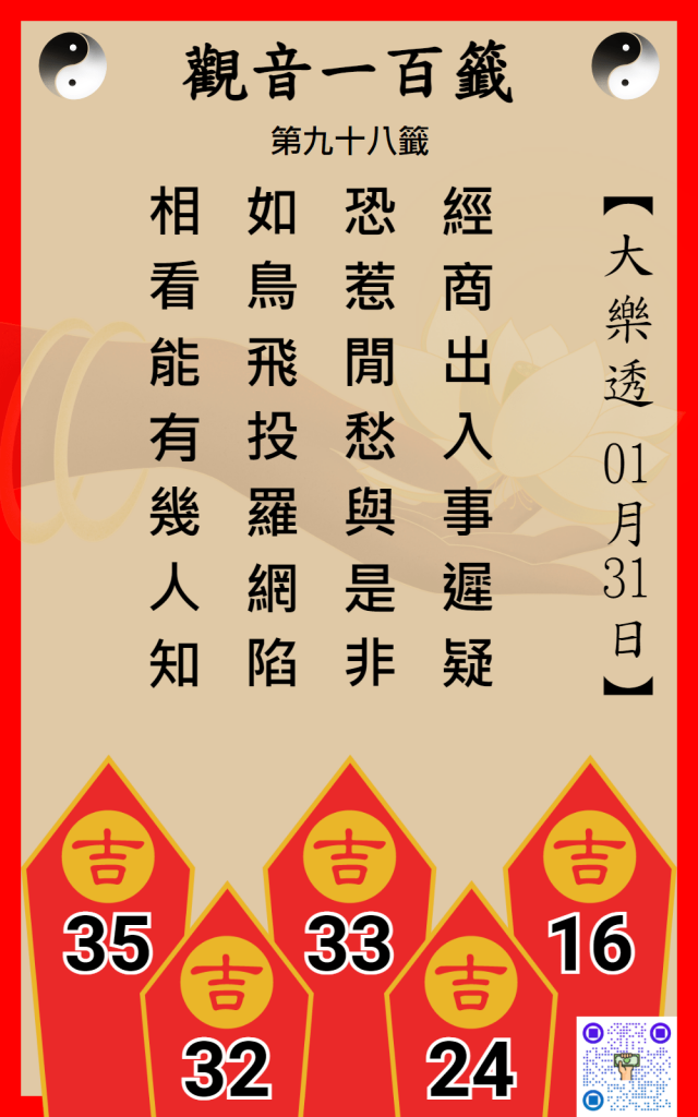 大樂透觀音一百籤 1/31