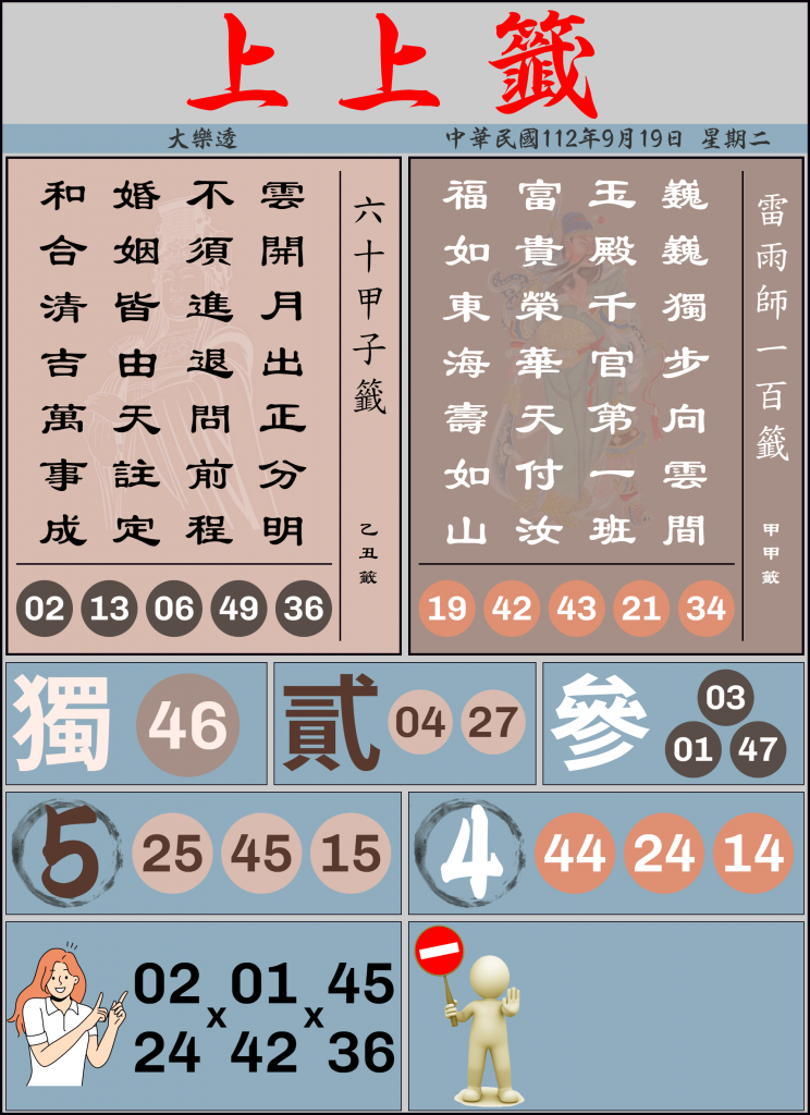 大樂透 上上籤 9/19