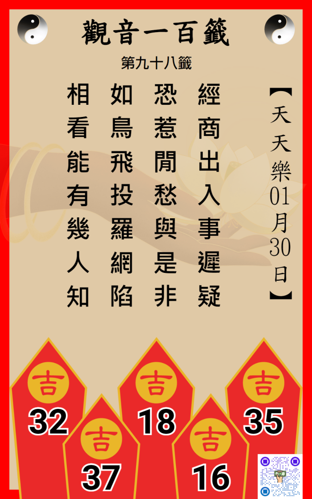 天天樂觀音一百籤 1/30