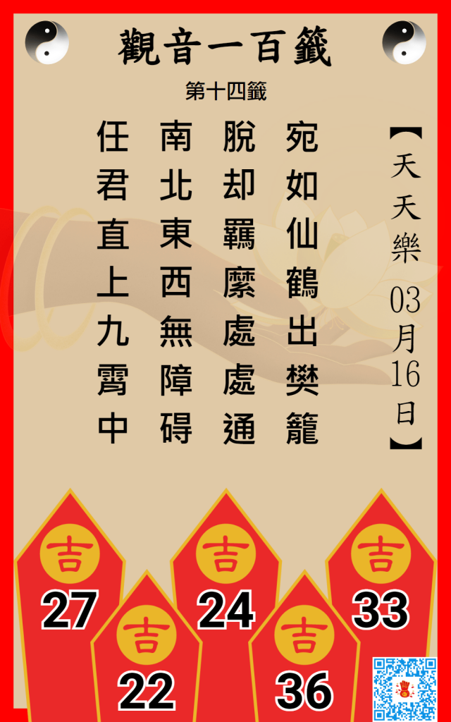 天天樂觀音一百籤 3/16
