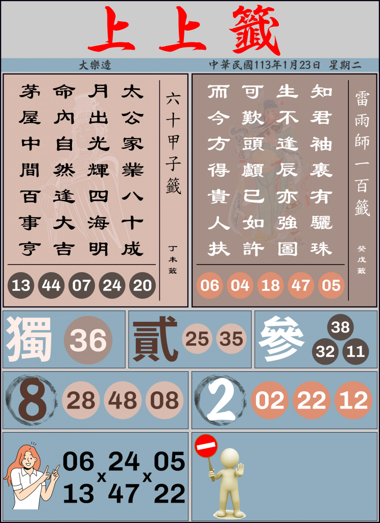 1/23 大樂透上上籤