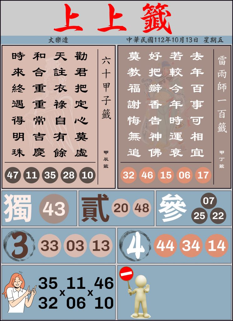 10/13 大樂透上上籤