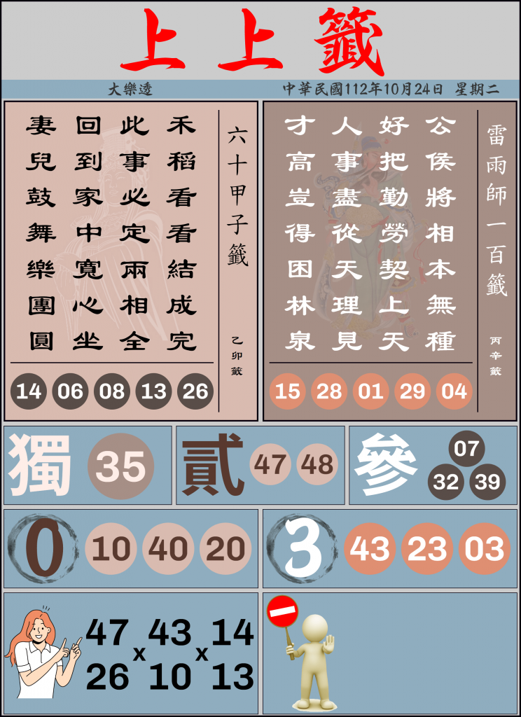 10/24 大樂透上上籤